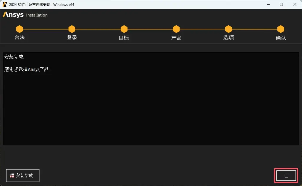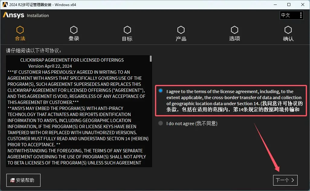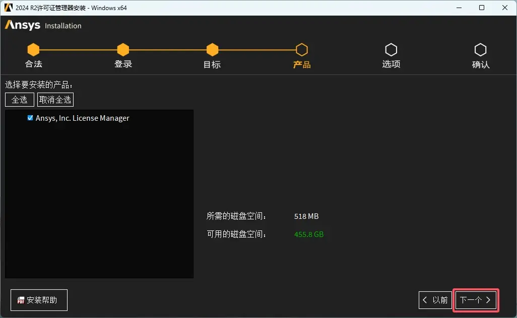 注意:若已经安装过ANSYS 2024 R2,已经拥有ANSYS License Manager 2024R2,则跳过安装ANSYS License Manager步骤,直接从第27步开始。 - 点击