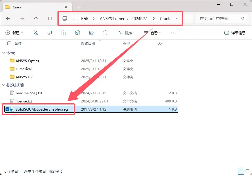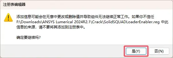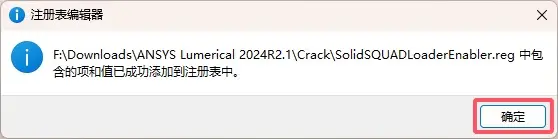 \ANSYS Lumerical 2024R2.1\Crack文件夹,双击打开SolidSQUADLoaderEnabler.reg。