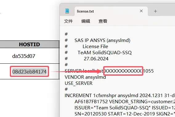 HOSTID替换掉license.txt中的XXXXXXXXXXXX,保存文件。