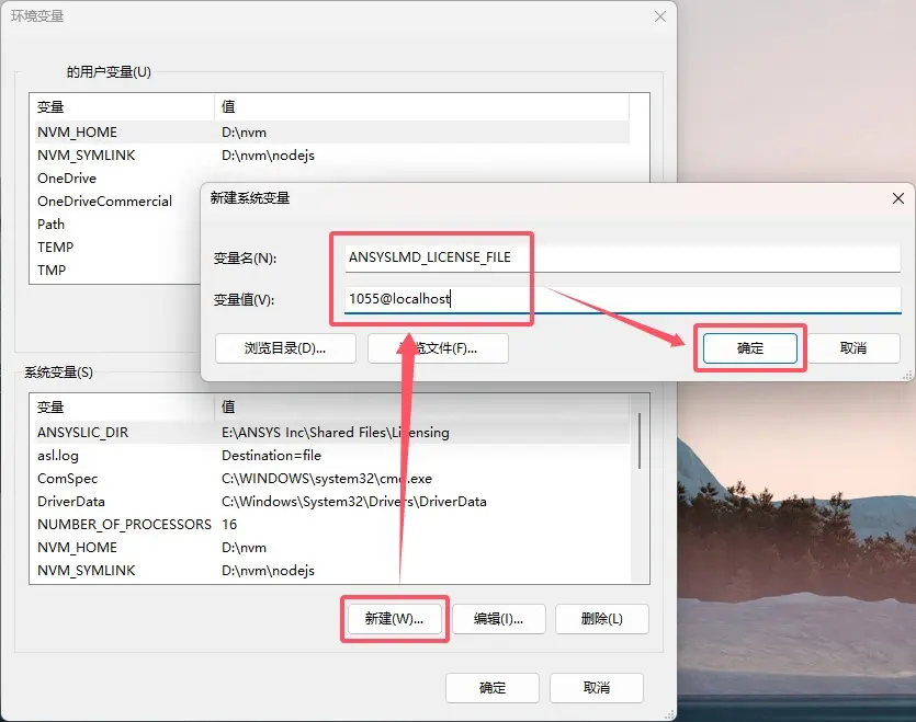 系统变量下点击新建,新建系统变量。变量名 1