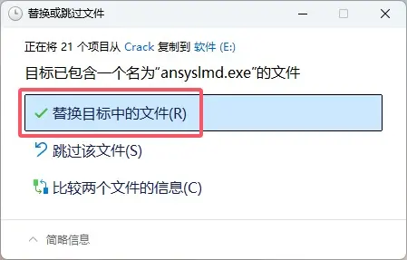替换目标中的文件。