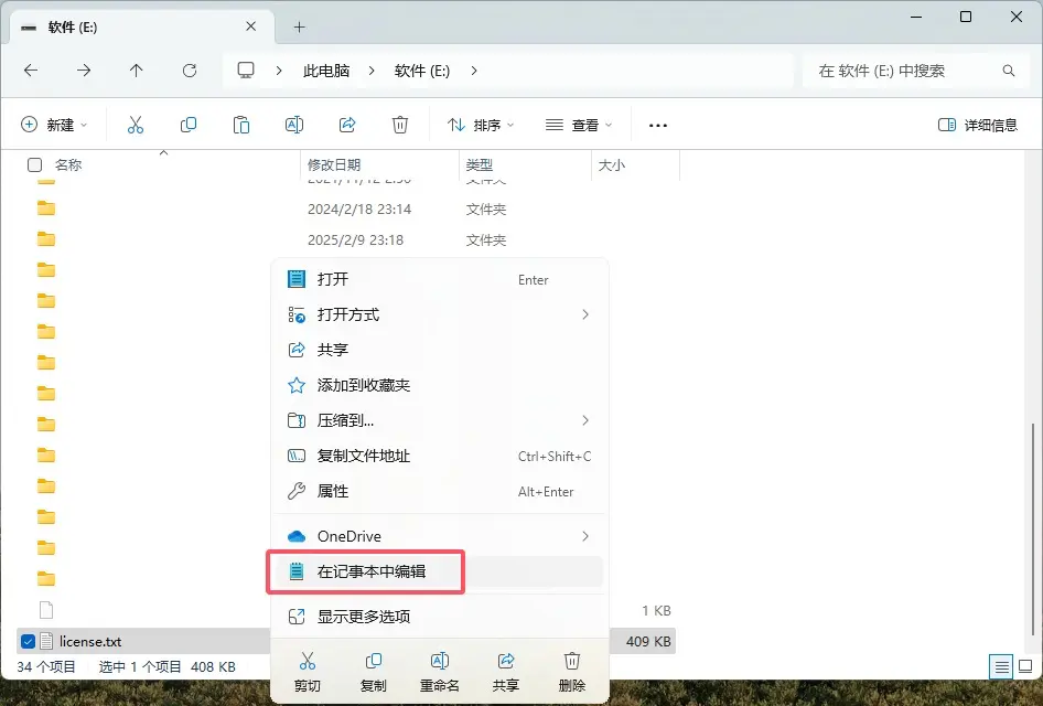 license.txt文件,右键,点击在记事本中编辑。
