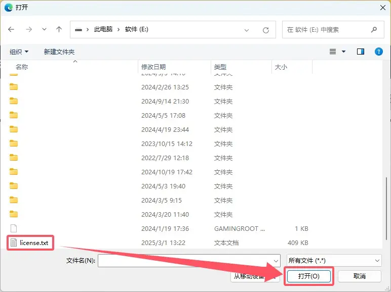 \ANSYS Inc的上一级路径中的license.txt文件,点击打开。
