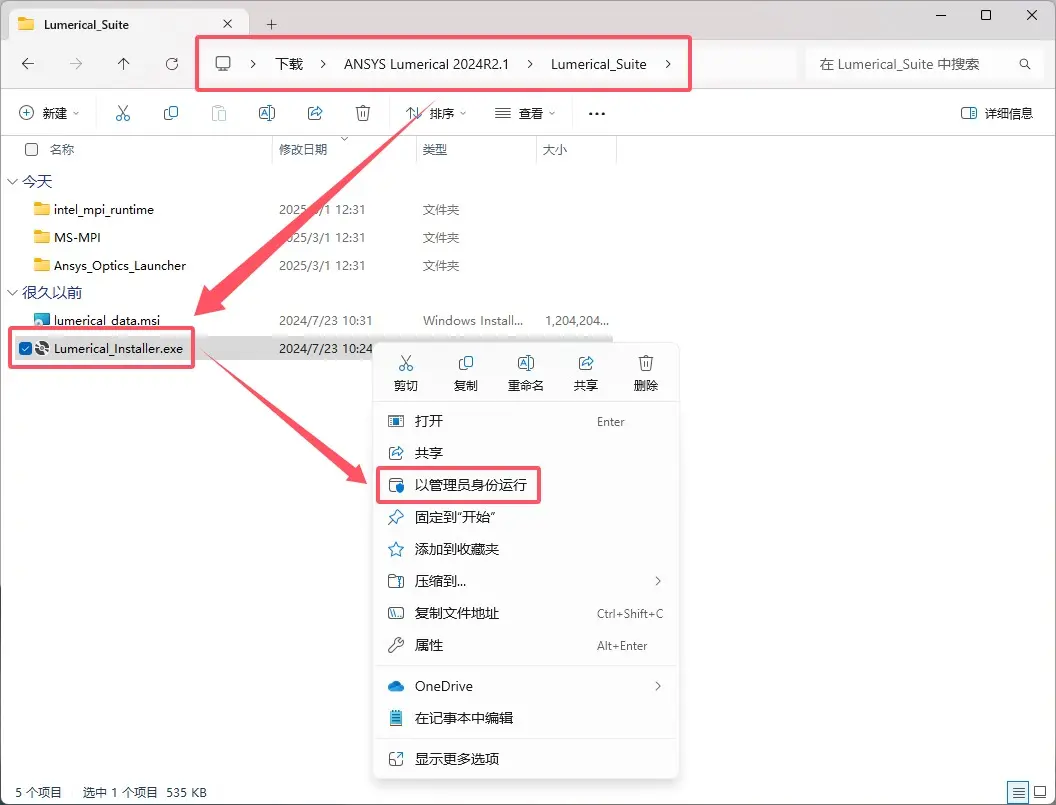 \ANSYS Lumerical 2024R2.1\Lumerical_Suite文件夹,选中Lumerical_Installer.exe,以管理员身份运行。